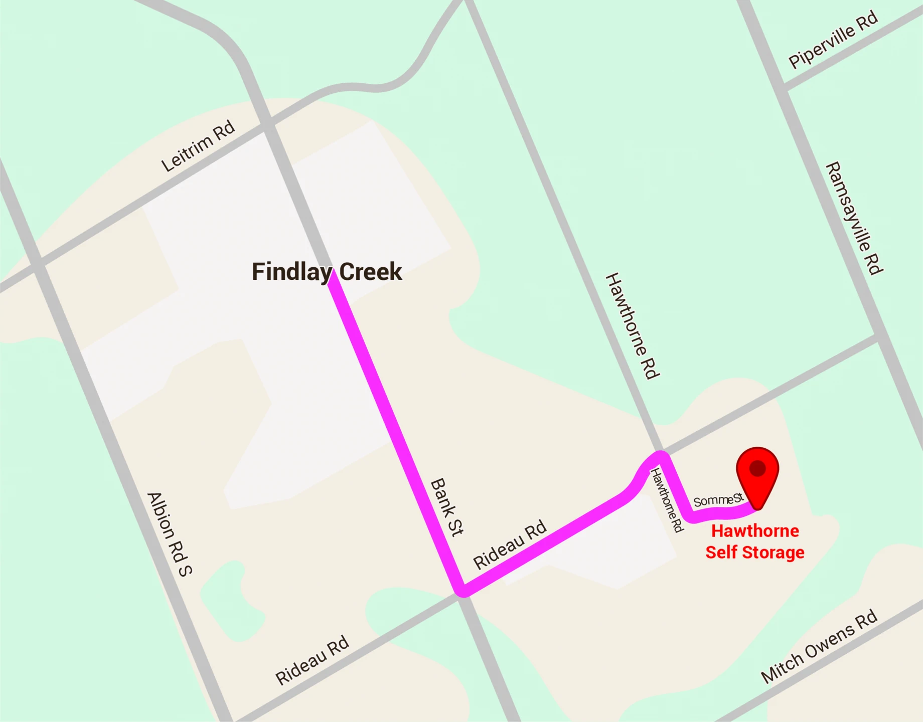 A short drive from Hunt Club Road, Bank Street (Hwy 31), and Findlay Creek, Hawthorne Self Storage is here to offer you storage solutions for all your belongings big or small!